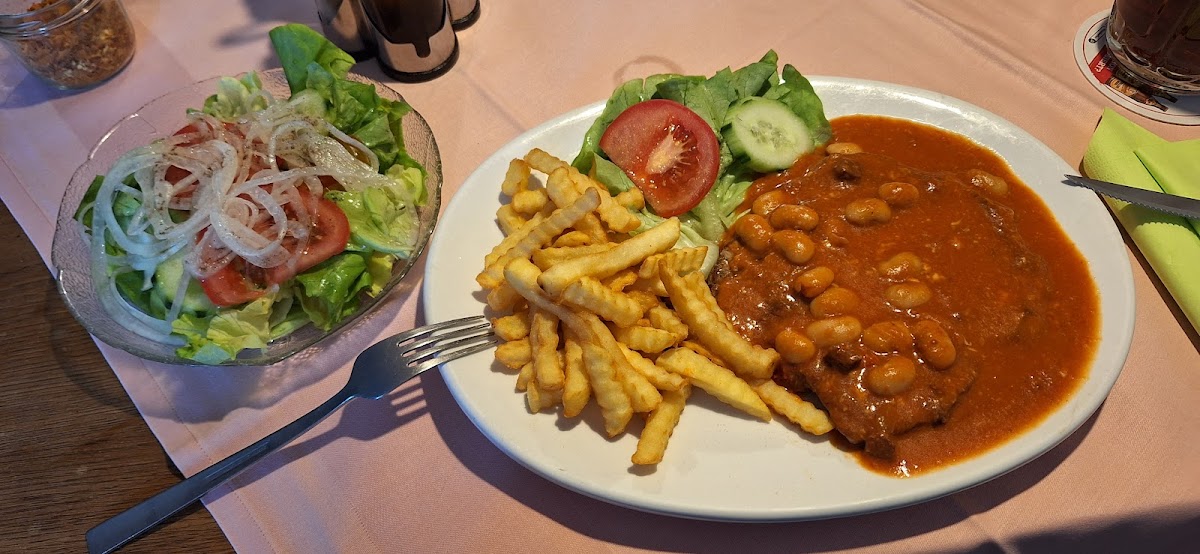 Wartezeit kann durchaus vorkommen, wird aber kommuniziert. Ansonsten leckeres Essen zu sehr guten Preisen. Karte ist übersichtlich. Schnitzel, Pizza, Nudeln steht alles auf der Karte. Reichliche Portionen, sogar der Beilagen Salat ist groß.